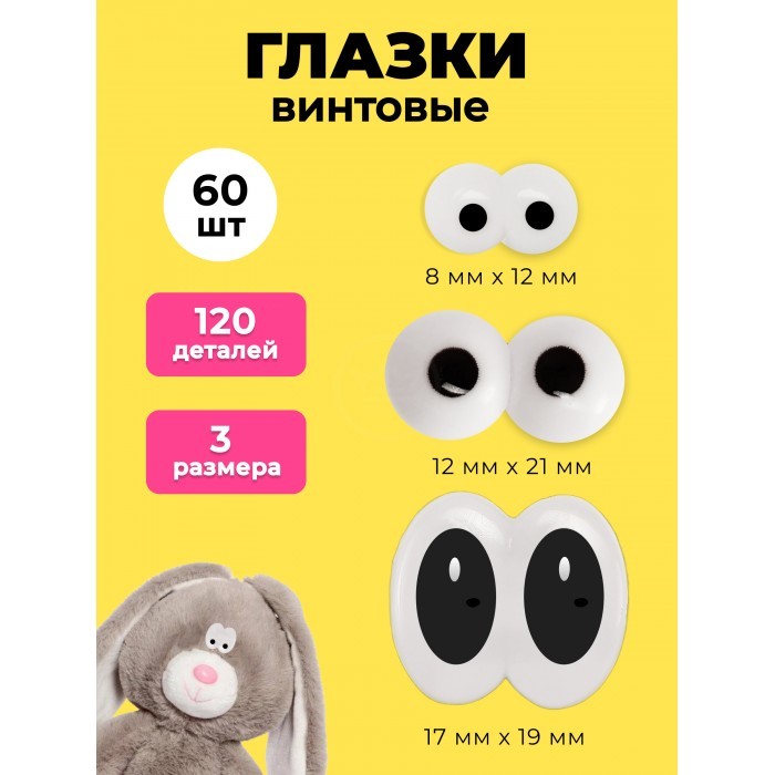 Глазки винтовые двойные с фиксатором "ПУЧИКИ"-1 шт (60 штук-17*19мм/12*21мм/8*12мм/60 фиксаторов) 265720