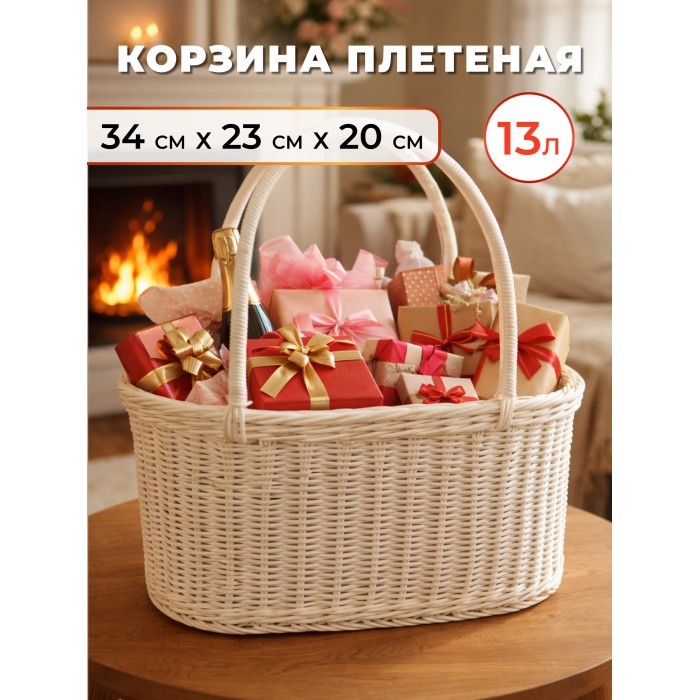 Корзина плетеная с ручками Овал (2 ручки) (32*20*17 ) иск/ротанг, белый 264263