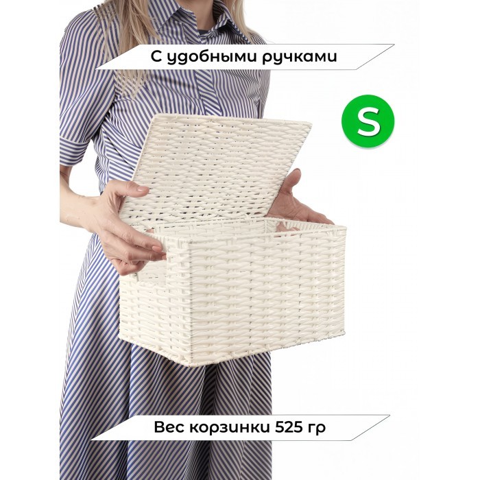 Корзина плетеная с/крыш S 290*190*160-mpl-fbo иск/ротанг, белый 265525
