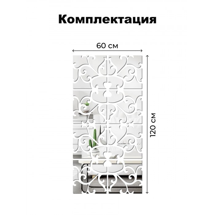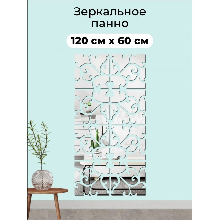 Интерьерные зеркальные наклейки Квадрат-Узор 8 шт ( 30*30 см ) + ТРАФАРЕТ 265987
