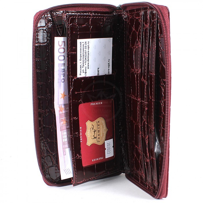 Портмоне женское Premier-S-39 н/к, 4 отд, 9 карм, бордо крокодил крупный (14) 202822