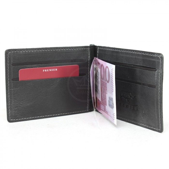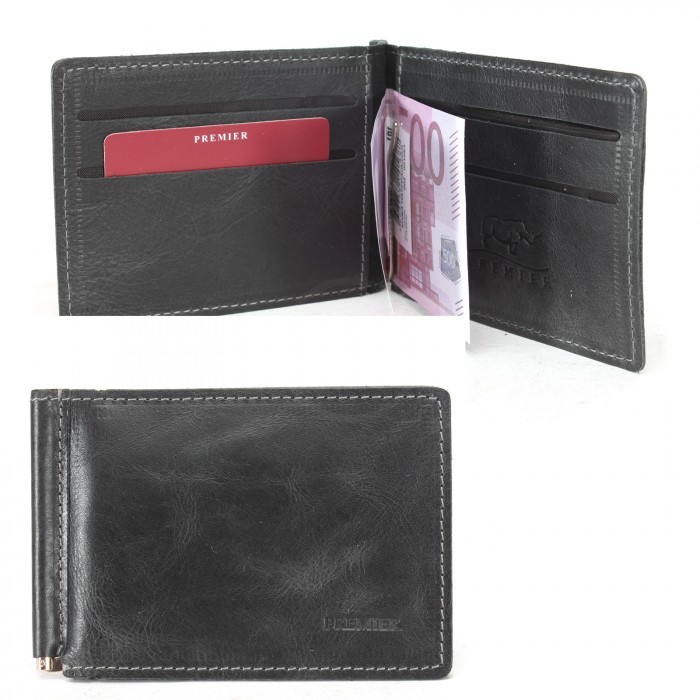 Зажим для купюр Premier-М-59 натуральная кожа (4 карм+карм под мелочь) черный пулл-ап (30) 230955