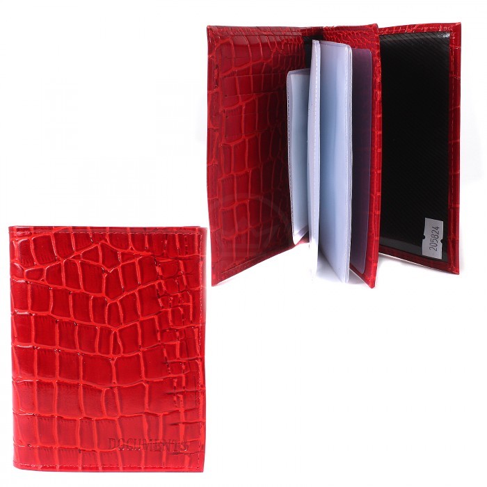 Обложка для авто+паспорт Croco-ВП-103 натуральная кожа красный крокодил (203) 205824