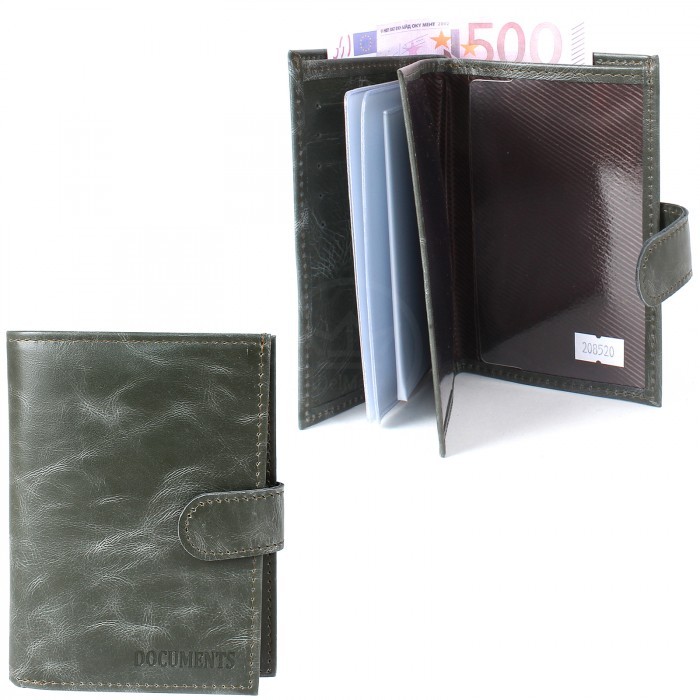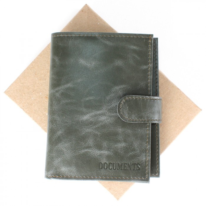 Обложка для авто+паспорт-Croco-ВП-1032 (с хляст, 5 внут карм, двойн стенка) натуральная кожа зеленый тем пулл-ап (205) 208520