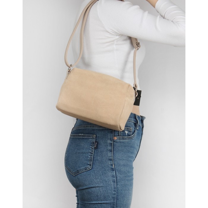 Сумка женская натуральная замша ADEL-114 (отделка - ИСК/КОЖА), 1отд, плечевой ремень, бежевый SALE 263732